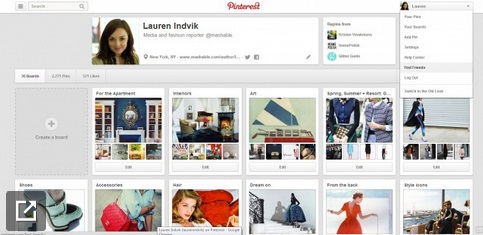 การเปลี่ยนแปลงของ Pinterest ดีไซน์ใหม่เน้นภาพใหญ่และความสะอาดตา ผลจากการลดพื้นที่กรอบหมุดหรือ pin เว็บไซต์น่าสนใจที่ผู้ใช้แชร์ไว้ ขณะเดียวกันหน้า Profile page ก็ปรับให้มีพื้นที่ในการโชว์ pin ที่มากขึ้นบนพื้นที่น้อยลง