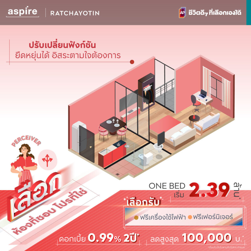 : เดินเข้าไปดูมุมไหนก็มีความเป็นตัวตนของคุณปะปนอยู่ในทุกมุมห้อง เริ่มตั้งแต่แปลนห้องที่ออกแบบและเลือกได้ตาม Personality Types ของคุณ เฟอร์นิเจอร์ การตกแต่ง ล้วนแล้วแต่คิดออกมาจากความเป็นคุณ เหมือนแปะป้ายบอกได้ว่า นี้มันห้องของใคร