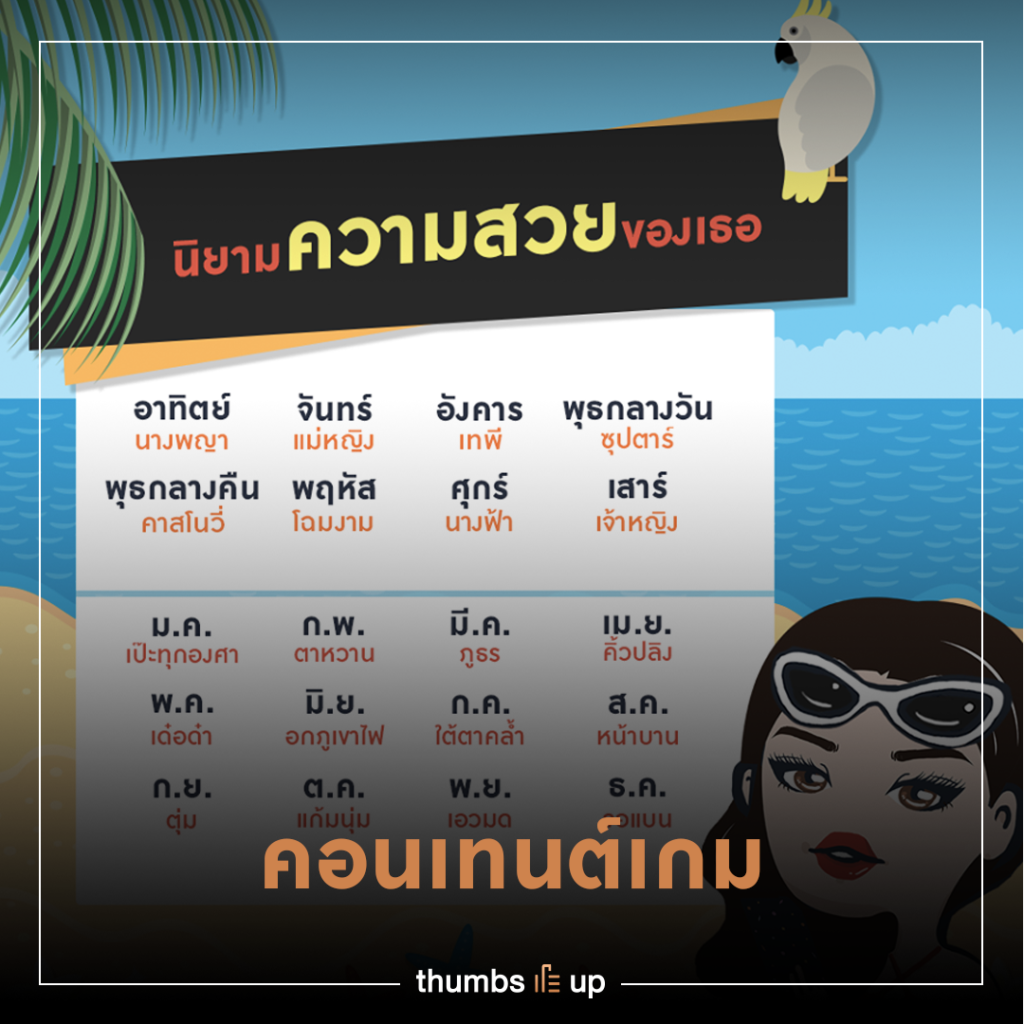 ด้านบนเป็นกิจกรรมการแจกกันหมดแล้ว มาดูวิธีการดึงดูดกันบ้าง นั่นคือการใช้ Content Creative เข้ามาช่วยเสริม ซึ่งเป้าหมายของคอนเทนต์แนวนี้คือการสร้าง Engagement นั่นแสดงว่ากลุ่มเป้าหมายของคุณกล้าที่จะเข้ามาสร้างบทบาทในช่องทางของเรา ซึ่งคอนเทนต์เกมจะดึงดูดง่ายที่สุด เช่น ฉายาของคุณเมื่อช็อปออนไลน์ โดยใช้เกณฑ์ออกแนวดวงนิดๆ คือ ดูจากวันที่เกิด หรือเลขสุดท้ายเบอร์โทรศัพท์