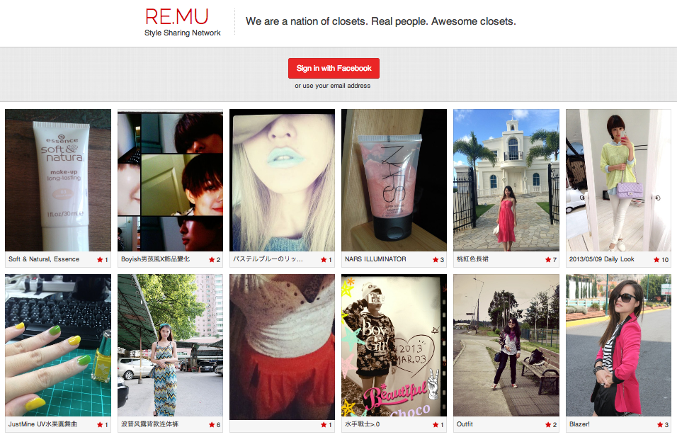 RE.MU เป็นเว็บไซต์สัญชาติไต้หวันที่กำลังบุกตลาดเอเชียตะวันออกเฉียงใต้ หลังจากได้รับเงินสนับสนุนจาก TMI Holdings เปิดให้คนนำภาพเสื้อผ้า กระเป๋า รองเท้า มาแสดงกัน เมื่อรวบรวมได้เยอะมากขึ้นก็สามารถติดตามเทรนด์การแต่งตัวจากสาวๆ ทั่วทุกมุมโลกได้ นอกจากนี้มีฟังก์ชั่นในการจัดหมวดหมู่เก็บสิ่งของชิ้นโปรดของเราไว้ เป็นเสมือนตู้เสื้อผ้าส่วนตัวนั่นเอง ฐานผู้ใช้หลักอยู่ที่ไต้หวัน และเริ่มมีผู้ใช้จาก สหรัฐฯ ญี่ปุ่น ไทย เม็กสิโก จีน และชิลี ซึ่งเป็นจุดแข็งหนึ่งของทาง RE.MU ที่มองว่ามีความหลากหลายในแง่ของคอนเทนต์ที่ถูกนำมาแชร์ และยังมีการจัดกิจกรรมออฟไลน์พบปะผู้ใช้เพื่อรับฟังความคิดเห็นและสร้างการมีส่วนร่วม