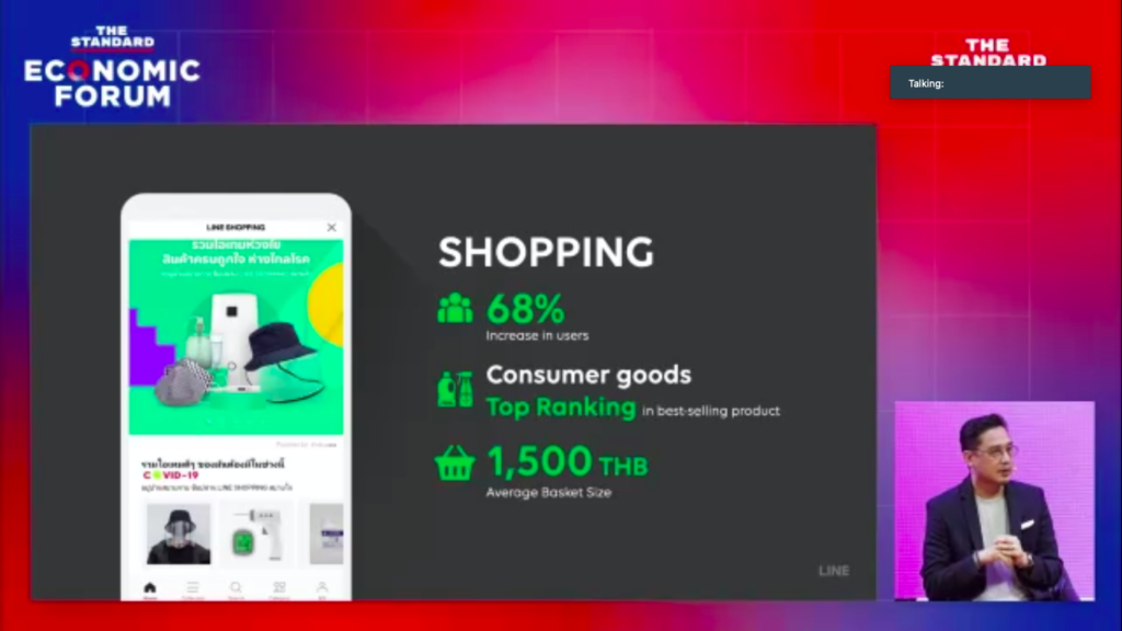 จากปกติที่ LINE มีรายได้หลักจากการโฆษณา แต่ในช่วงวิกฤตที่ผ่านมา กลายเป็นว่าบริการด้านอีคอมเมิร์ซอย่าง LINE SHOPPING เติบโตขึ้นเกินคาด อาจเพราะต้องอยู่บ้านคนเลยใช้จ่ายเราเยอะขึ้น จากปกติที่เปิดไลน์มาเพื่อสื่อสาร แต่ตอนนี้ก็เริ่มใช้บริการอื่นๆ ของเรา