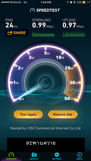 ต่างจังหวัด เนื่องจากมีโอกาสได้เอาซิมเพนกวินไปต่างจังหวัดด้วย เลยได้ทดสอบกัน 2 จังหวัดครับ ได้แก่ ศรีสะเกษ อ.เมือง และอุบลราชธานี อ.เมือง เช่นกัน ความเร็วก็ไม่ต่างกันกับการทดสอบที่กรุงเทพแต่อย่างใด