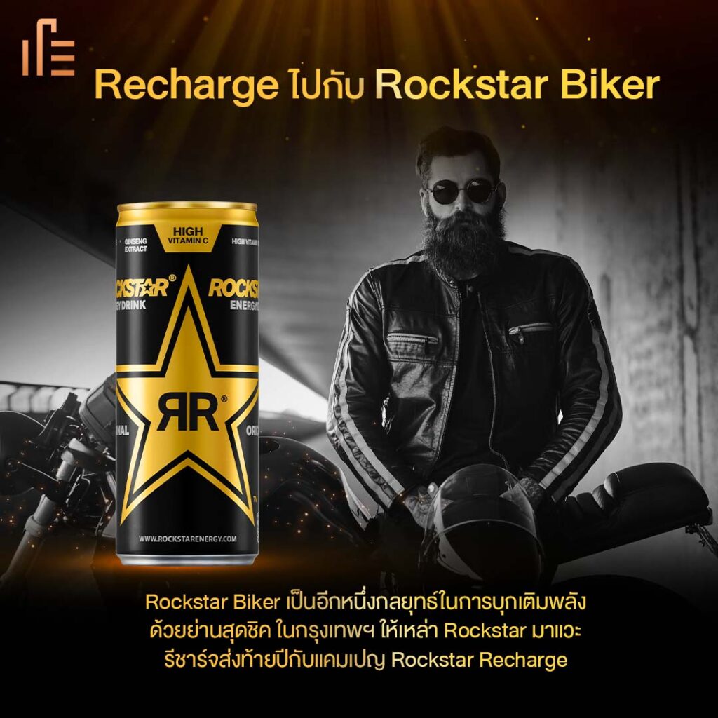 การจัดแคมเปญอย่าง Recharge แล้วไปต่อกับ Rockstar Biker เป็นอีกหนึ่งกลยุทธ์ในการบุกเติมพลังด้วยย่านสุดชิคในกรุงเทพฯ เพื่อทำความรู้จักกับเหล่า Rockstar ตัวจริง ให้มาแวะรีชาร์จส่งท้ายกับแคมเปญ Rockstar Recharge ที่ขนเหล่าไบค์เกอร์กับมอเตอร์ไซค์สุดหรูอย่าง Ducati เพื่อเติมพลังให้ชาวกรุงเทพพร้อมส่งต่อแจ๊คเก็ต Rockstar ให้กับเหล่า Rockstar ตัวจริงในทุกๆ ด้าน