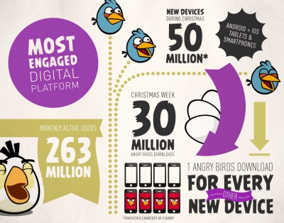 “Rovio” บริษัทผู้สร้างเกมดังอย่าง Angry Birds ประกาศพร้อมลุยธุรกิจโฆษณาเพื่อหาแหล่งรายได้ใหม่ที่นอกเหนือจากค่าดาวน์โหลดแอปพลิเคชันและค่าลิขสิทธิ์ในการผลิตสินค้าตัวการ์ตูนของบริษัท โดย Rovio เริ่มต้นด้วยการเปิดตัวแผนกงานโฆษณาเพื่อประสานงานกับแบรนด์ที่ต้องการสร้างโฆษณาในเกมที่มีความแนบเนียนกว่าการแสดงแบนเนอร์โฆษณาในเกมธรรมดา
