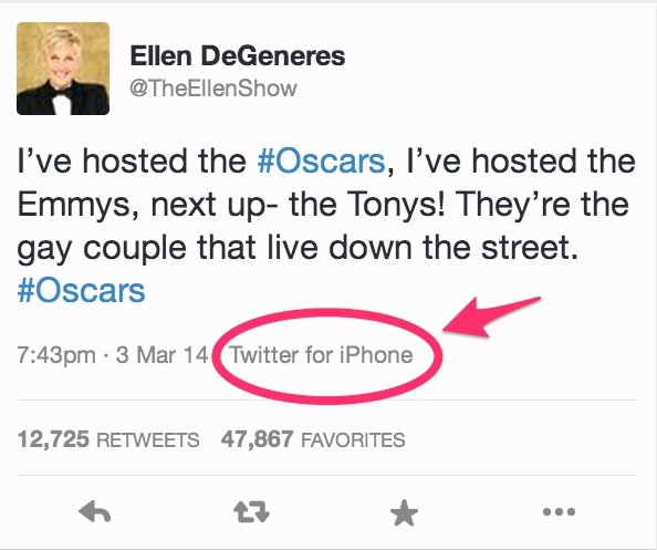 หลายๆ คนผ่านตากันไปแล้วกับรูปที่ Ellen DeGeneres พิธีกรรายการชื่อดังซึ่งมารับบทพิธีกรงาน The Oscars ในปีนี้ได้โพสต์ลงบน Twitter และได้รับการตอบรับด้วยการแชร์สูงถึง 3.2 ล้านครั้ง (จนถึงวันที่ 5 มีนาคม 2557) และทำให้บริการอย่าง Twitter ล่มไปเป็นเวลาถึง 20 นาที ซึ่งถือเป็นมิติใหม่ที่ The Oscars ได้เข้ามามีอิทธิพลต่อโลกออนไลน์ได้อย่างไม่เคยมีมาก่อน