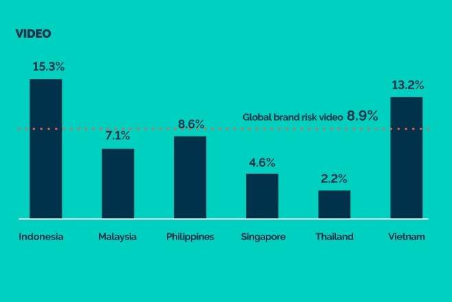 ในภาพรวม อินโดนีเซียคือประเทศที่แบรนด์จะมีความเสี่ยงภาพลักษณ์เสียหายสูงที่สุดสำหรับการลงโฆษณาวิดีโอ ขณะที่มาเลเซียคือประเทศที่เสี่ยงสูงที่สุดสำหรับโฆษณา display แถมมาเลเซียยังเป็นประเทศเดียวที่ทำอันดับยอดชมหรือ viewability ต่ำกว่ามาตรฐานโลกและสหรัฐอเมริกาทั้งในตลาดโฆษณา display และวิดีโอ