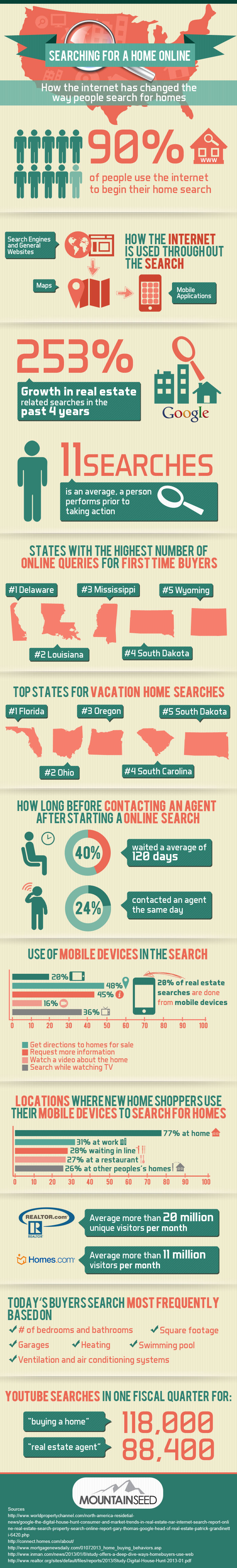 เว็บไซต์ Mountainseed.com รายงานว่าผู้บริโภคในสหรัฐฯ จำนวนมากเริ่มหันมาค้นหาที่อยู่อาศัยผ่าน Search Engine อย่าง Google รวมไปถึงหาข้อมูลบนแอพพลิเคชั่นในโทรศัพท์มือถือเพิ่มมากขึ้น นอกจากนี้ยังพบว่ามีคลิปวีดีโอเกี่ยวกับบ้านที่ถูกค้นหาบน Youtube มากถึง 118,000 ครั้งและเกี่ยวกับ Real Estate Agent อีกกว่า 88,400 ครั้ง ซึ่งในจำนวนผู้ที่ค้นหาบ้านผ่านอินเทอร์เน็ตนี้จะตัดสินใจซื้อบ้านเป็นสัดส่วนประมาณ 1 ใน 11 คน