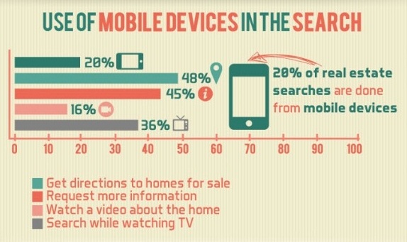 การสำรวจพบว่าโทรศัพท์มือถือและอุปกรณ์เคลื่อนที่ (Mobile Device) กลายเป็นเครื่องมือสำคัญที่ใช้เพื่อค้นหาที่อยู่อาศัยมากถึง 20% โดยส่วนใหญ่ใช้เพื่อค้นหาเส้นทางไปยังบ้านที่กำลังประกาศขายมากที่สุดเป็นอันดับ 1 (48%) รองลงมาเป็นการใช้เพื่อสอบถามข้อมูลเพิ่มเติม (45%) รวมไปถึงใช้ค้นหาข้อมูลขณะกำลังดูทีวี (36%) และใช้เพื่อดูคลิปวีดีโอเกี่ยวกับบ้าน (16%)