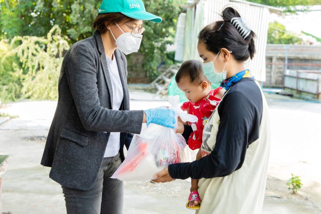 ก่อนหน้านี้ หลังจากมีการสั่งปิดแคมป์คนงานผลกระทบตกหนักๆ คือคนที่อยู่ในแคมป์ทั้งคนไทยและต่างด้าว สิ่งที่เราดูแลมาตลอดคือส่งข้าวสารอาหารแห้งต่าง ๆ แต่ถ้าเราเริ่มต้นจากคนคิดที่จะให้ เราต้องลงพื้นที่ไปดูด้วยเอง ยกตัวอย่างในแคมป์ มีทั้งเด็กเล็ก เด็กกำลังโต เมื่อพ่อแม่ไม่สามารถออกจากแคมป์ไปซื้อนมผง นมสดได้ เด็กเหล่านี้จะเอานมที่ไหนดื่ม ดังนั้น ทางเสนาจึงได้มีการจัดเตรียมถุงยังชีพสำหรับเด็กไว้เผื่อด้วย