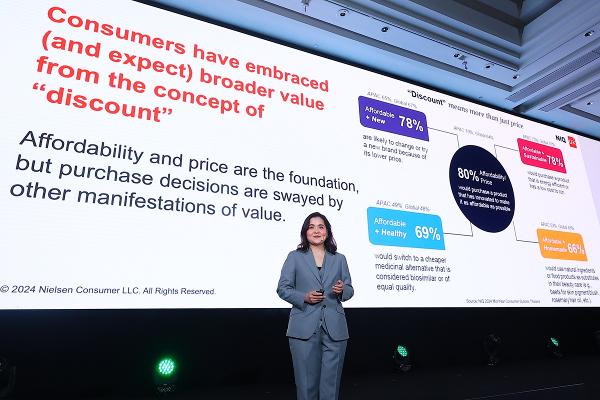 คุณชินตา ศรีจินตอังกูร Thailand Site Leader บริษัท นีลเส็นไอคิว (ประเทศไทย) จำกัด ได้เผยผลสำรวจ UNFOLDING CONSUMER INSIGHTS IN A CHALLENGING THAILAND ในงานสัมมนาของ LINE ว่า Consumer ยุคใหม่มีความต้องการที่ไม่เหมือนกันและมีเงินในกระเป๋าไม่เท่ากัน ดังนั้นการยิงโปรโมชันหรือสร้างแคมเปญจะต้องมองถึงเรื่อง “เงิน” ของลูกค้าด้วย