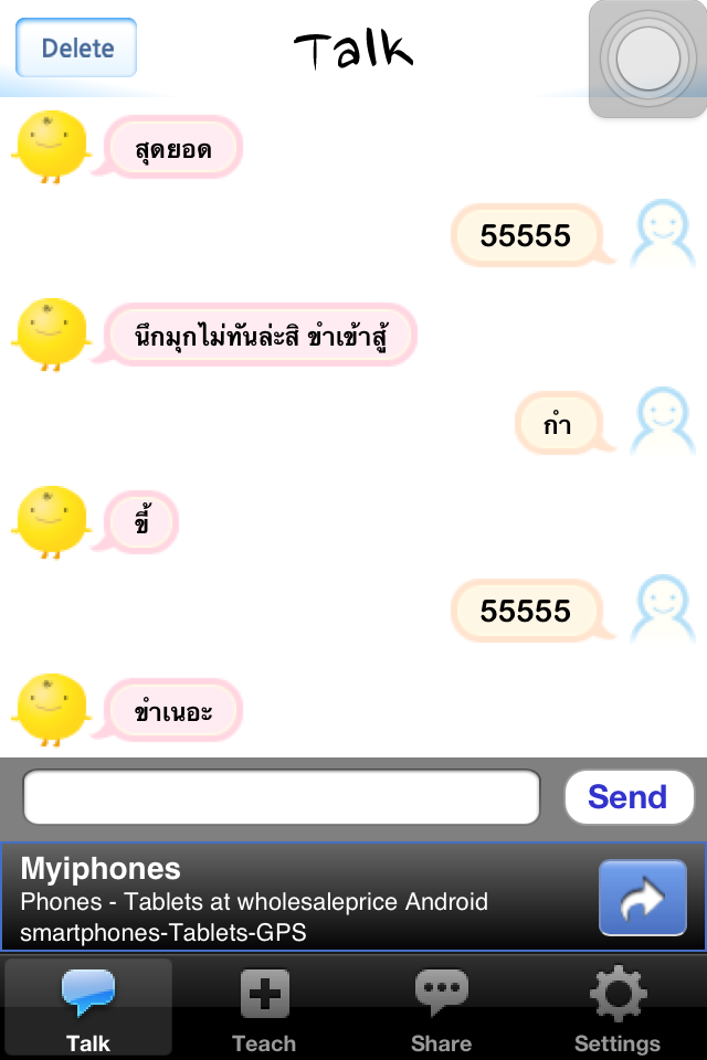 ก่อนอื่นขอคาดหัวก่อนนะคะว่า app นี้ 17+ เพราะมีคำที่ไม่เหมาะสมกับคุณหนูๆ ทั้งหลาย ^^ โผล่มาให้เห็นได้ SimSimi เป็น app ที่พัฒนาโดยบริษัท ISMAKER จากแดนโสมซึ่งมีความชำนาญในการพัฒนา app แนวถามตอบด้วย bot โดยเฉพาะค่ะ มีทั้งบน iOS, android ?เว็บฯ รองรับได้หลายภาษา