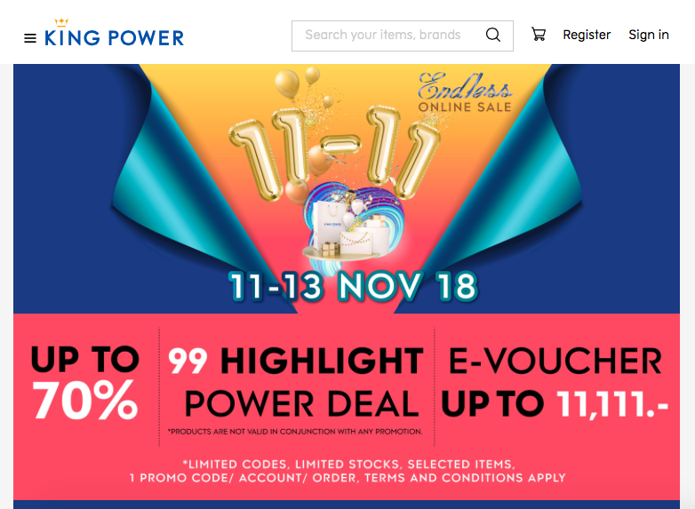ถ้าไม่นับ supersports.co.th, esteelauder.co.th หรือ King Power Online ยังมีอีกหลายแบรนด์ที่ร่วมโชว์ข้อเสนอพิเศษสุดแห่งปี บางแบรนด์เริ่มจัดก่อนตั้งแต่วันศุกร์ 9 พฤศจิกาบน ขณะที่บางแบรนด์ขีดเส้นลุยวันเดียวเพื่อให้เกิดความพิเศษแท้จริง