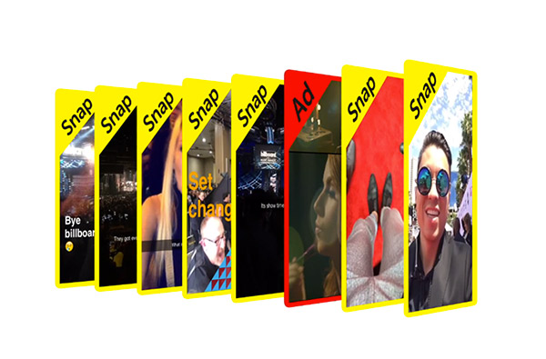 แพลตฟอร์มโฆษณาของ Snapchat จะเน้นแสดงภาพในมุมแนวนอนมากกว่าแนวตั้ง ผู้ใช้จะได้ชมภาพโฆษณาเต็มจอหากหมุนสมาร์ทโฟนในมุมที่ถูกต้อง นอกจากนี้ Snapchat เปิดเผยว่าจะแทรกวิดีโอโฆษณาไว้ตรงกลางของรายการวิดีโอสตรีมมิง แทนที่จะติดไว้ที่ส่วนเริ่มต้นเหมือนโฆษณาในเครือข่ายสังคมทั่วไป