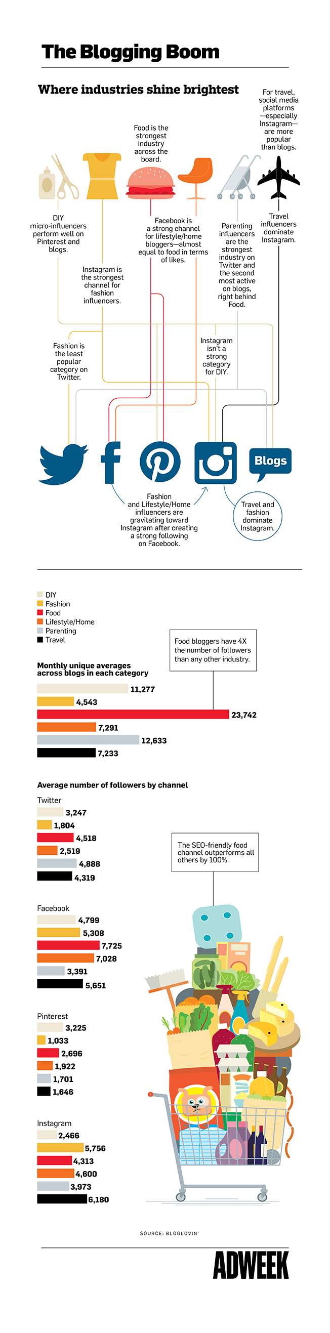 หากเป็นคอนเทนต์กลุ่มงานฝีมือ DIY เหล่า influencer มักได้รับเสียงตอบรับยอดเยี่ยมบน Pinterest และ blog ต่างๆ ขณะที่ Instagram นั้นถือเป็นช่องทางที่แข็งแกร่งสำหรับคอนเทนต์กลุ่มแฟชัน ซึ่งเป็นเรื่องที่ได้รับความนิยมน้อยที่สุดบน Twitter