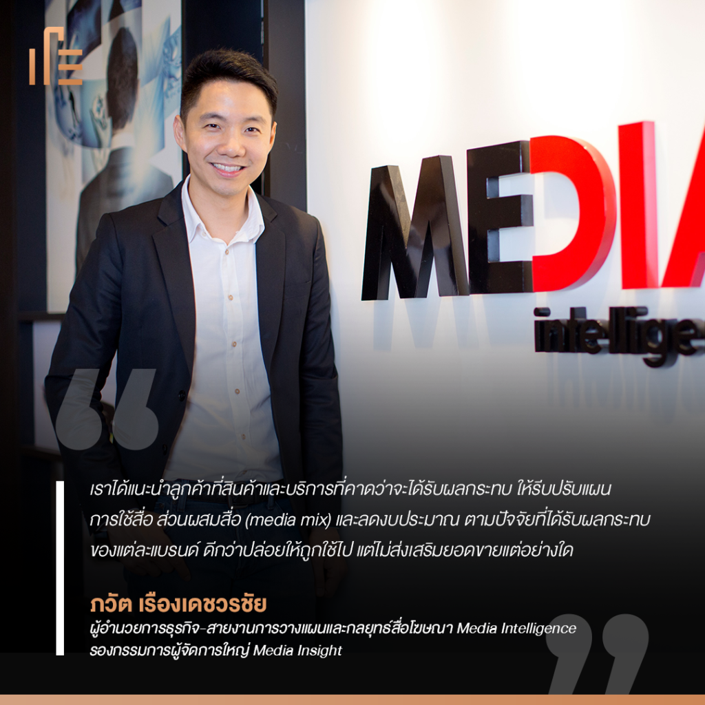 สำหรับ Media Agency อย่าง MI เราได้เฝ้าติดตาม ประเมินและปรับแผนการใช้สื่อโฆษณาตามสถานการณ์ที่เกิดขึ้นในแต่ละวัน ร่วมกับลูกค้าของเรามาระยะหนึ่งแล้ว โดยเราได้แนะนำลูกค้าที่สินค้าและบริการที่คาดว่าจะได้รับผลกระทบ ให้รีบปรับแผนการใช้สื่อ ส่วนผสมสื่อ (media mix) และลดงบประมาณ ตามปัจจัยที่ได้รับผลกระทบของแต่ละแบรนด์ ดีกว่าปล่อยให้ถูกใช้ไป แต่ไม่ส่งเสริมยอดขายแต่อย่างใด เพื่อให้ลูกค้าผ่านวิกฤตนี้ไปให้ได้ “ลูกค้ารอด…เรารอด”