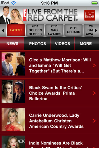 ก่อนวันงานจริง ผู้ใช้งานสามารถรับข่าวอัพเดตและดูวีดีโอคลิปของงานในปีก่อนๆ และในคืนประกาศรางวัลจริง เราสามารถเลือกได้ว่าจะดูภายผ่านกล้องตัวใด จากกล้องที่ถ่ายภาพงานจริงอยู่ประมาณ 24 ตัว ทั้งจากหลังเวทีไปจนถึงบนพรมแดง(ที่ดารา Hollywood กำลังเดินเข้างาน) และสำหรับผู้คลั่งไคล้ดารา ก็มีกล้องที่จะถ่ายงาน After party ด้วย ทั้งหมดผู้ชมสามารถเลือกได้เองตามใจชอบ