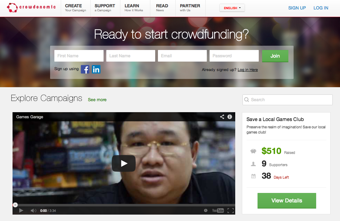 Leo: Crowdonomic.com is a crowdfunding platform with a focus on empowering innovators in Asia. Using crowdfunding, anyone can reach out to the online community to have them financially support their project, event, business, or cause. In addition to funding, crowdfunding campaign creators also enjoy rich feedback from the online community to improve their idea, build a community following, and acquire future customers. Venture financing in South East Asia is still at a nascent stage and early stage capital formation remains very inefficient. On the other hand, South East Asia has always had a strong SME sector now being fuelled by growing innovation and entrepreneurship. Crowdfunding addresses this supply-demand dilemma by enabling businesses to use the power of the internet and social media to raise funds.