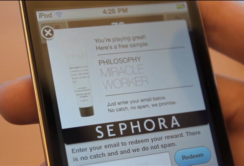 ยกตัวอย่างให้เห็นกันง่ายๆ สมมติว่าเรากำลังเล่นเกมผ่านได้ตามเกณฑ์ที่กำหนดไว้ปุ๊ป! Kiip จะทำการส่ง Push notification มายังเครื่องมือถือว่าคุณได้รับกาแฟฟรีที่ร้าน Starbucks แทนที่จะเป็นการแสดงแบนเนอร์โฆษณาธรรมดาๆ ภายใน App หลังจากนั้นผู้เล่นสามารถแลกของรางวัลได้โดยการใส่อีเมลเข้าไปหรือจะมอบเป็นของรางวัลแก่เพื่อนๆ ก็ยังได้