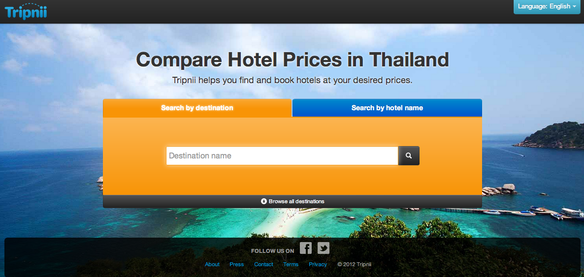 Tripnii เป็นอีกหนึ่ง Startup ที่เปิดให้จองโรงแรมในไทย รองรับ 2 ภาษาทั้งไทยและอังกฤษ เน้นการจองโรงแรมแบบเปรียบเทียบราคา (คล้ายกับ hotelscombined.com, trivago.co.uk) ทำให้ผู้ใช้ไม่ต้องไปเปิดเว็บฯ อื่นให้เสียเวลา จองและจบได้ภายในเว็บฯ เดียว ซึ่งทาง Tripnii จะทำการดึงข้อมูลโรงแรงและราคามาจาก API ของเว็บฯ ที่เปิดให้บริการ