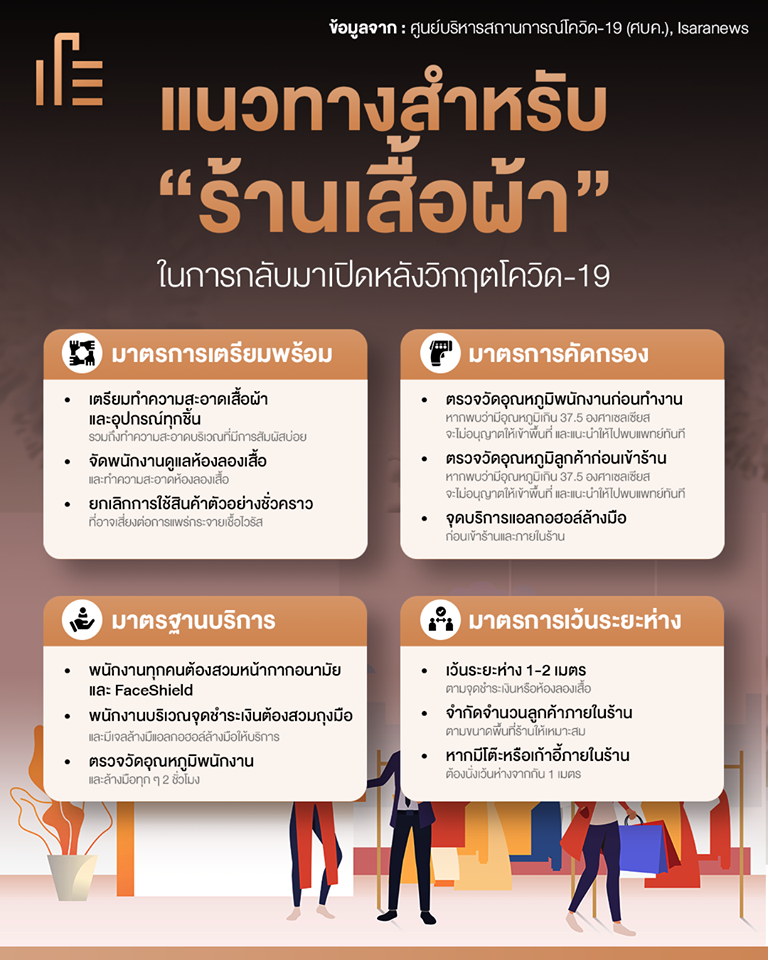 Thumbsup จึงได้รวบรวมข้อแนะนำและแนวทางการปฏิบัติในสำหรับ “ร้านเสื้อผ้า” ในการกลับมาเปิดบริการหลังวิกฤตโควิด-19 มีอะไรบ้างไปดูกันเลยครับ