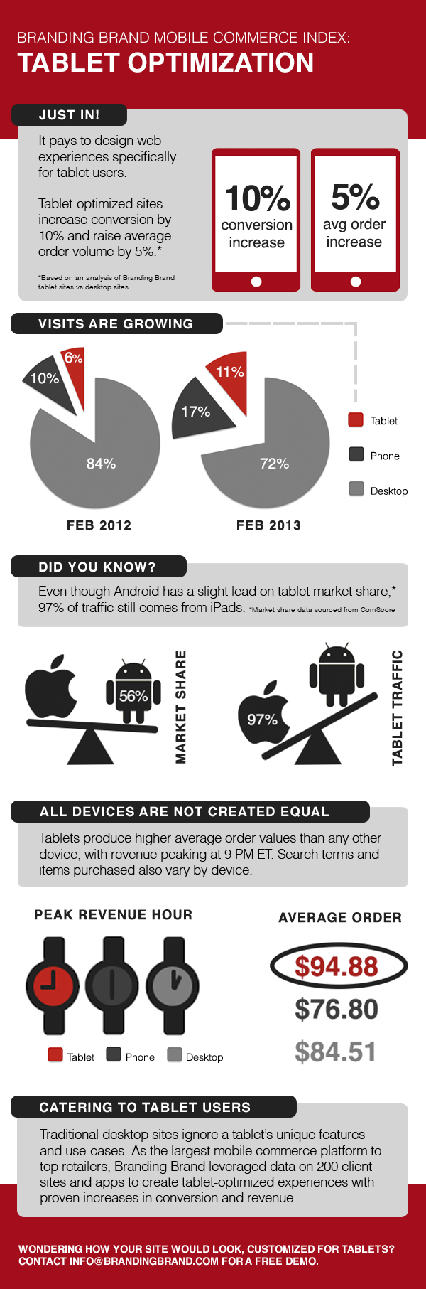 แต่แท็บเล็ตกลับได้รับความสนใจจากกลุ่มนักการตลาดและนักธุรกิจมากกว่าโทรศัพท์มือถือ เพราะผลสำรวจพบว่าแท็บเล็ตกลายเป็นช่องทางสำคัญที่ช่วยเพิ่มอัตราการซื้อสินค้าต่อจำนวนการคลิก (Conversion Rate) สูงถึง 10% รวมไปถึงจำนวนการซื้อสินค้าเฉลี่ยที่เพิ่มขึ้นอีก 5%