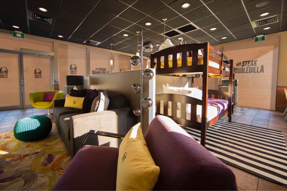 ใครที่ฝันอยากนอนค้างที่ร้านอาหารอาจตาโตกับแคมเปญนี้ เพราะเชนฟาสต์ฟู้ดชื่อดังอย่าง Taco Bell จับมือกับบริการห้องพักแนวใหม่ Airbnb เปิดโอกาสให้ผู้โชคดี 4 คนได้สิทธิ์นอนพักผ่อนที่ร้าน Taco Bell ในแคนาดาเป็นเวลา 1 คืน