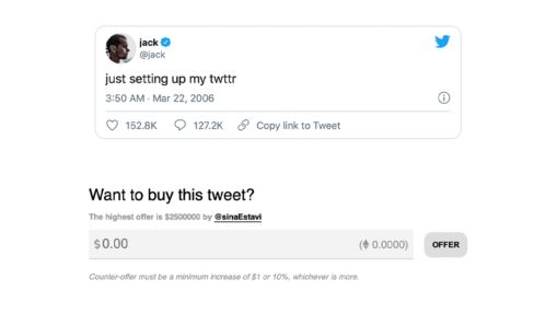 Technologyผู้ก่อตั้งทวิตเตอร์เปิดประมูลทวีตแรกของโลก ราคาล่าสุดอยู่ที่ 2.5 ล้านดอลลาร์สหรัฐฯ sarun.roj March 10, 2021March 10, 2021