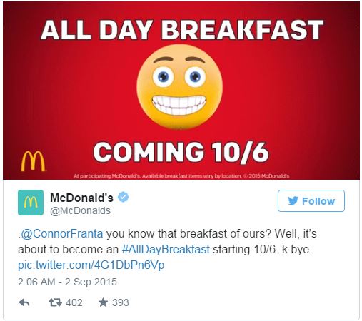 Branding McDonald’s เตรียมปล่อย All-Day Breakfast ขายพร้อมกันทั่วอเมริกาMcDonald’s เตรียมปล่อย All-Day Breakfast ขายพร้อมกันทั่วอเมริกา Palouis September 8, 2015September 8, 2015