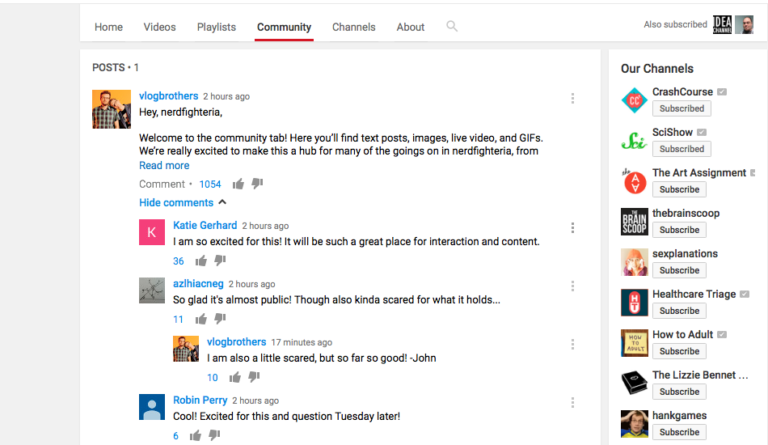 Branding YouTube เพิ่มแท็บ Community ให้แต่ละแชนแนลส่งข้อความถึงแฟน ๆ ได้โดยตรงYouTube เพิ่มแท็บ Community ให้แต่ละแชนแนลส่งข้อความถึงแฟน ๆ ได้โดยตรง thumbsupteam September 15, 2016September 16, 2016