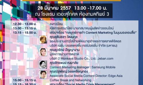 PR Newsกลยุทธ์การทำ Content Marketing และSocial Media Crisis Management ในมุมมองของนักสื่อสารมวลชน thumbsupteam March 24, 2014