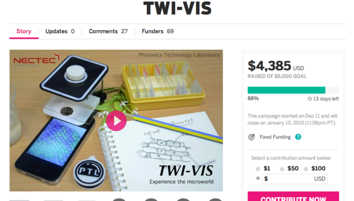 Gadget TWI-VIS กล้องจุลทรรศน์เคลื่อนที่ฝีมือคนไทย กำลังระดมทุนที่ IndiegogoTWI-VIS กล้องจุลทรรศน์เคลื่อนที่ฝีมือคนไทย กำลังระดมทุนที่ Indiegogo mimee December 29, 2014December 29, 2014
