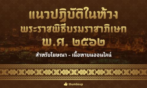 ข่าวไทยแนวปฏิบัติในห้วงพระราชพิธีบรมราชาภิเษก พ.ศ.2562 สำหรับโฆษณา-เนื้อหาออนไลน์ thumbsupteam April 3, 2019