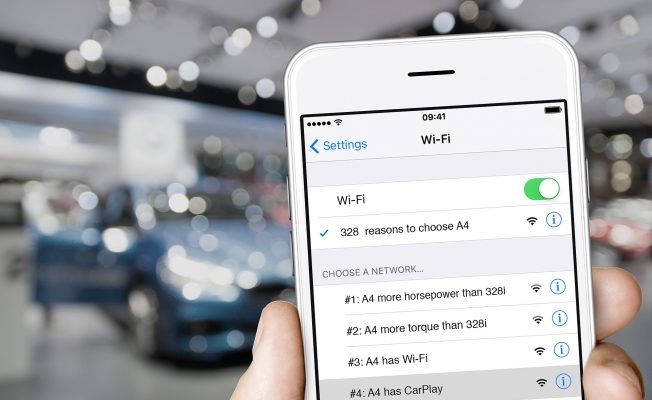 Business ค่ายรถยนต์ Audi โฆษณาข่มคู่แข่งผ่านชื่อ Wi-Fi ฟรีในงานมอเตอร์โชว์ค่ายรถยนต์ Audi โฆษณาข่มคู่แข่งผ่านชื่อ Wi-Fi ฟรีในงานมอเตอร์โชว์ Praimpat Trakulchokesatiean March 24, 2016