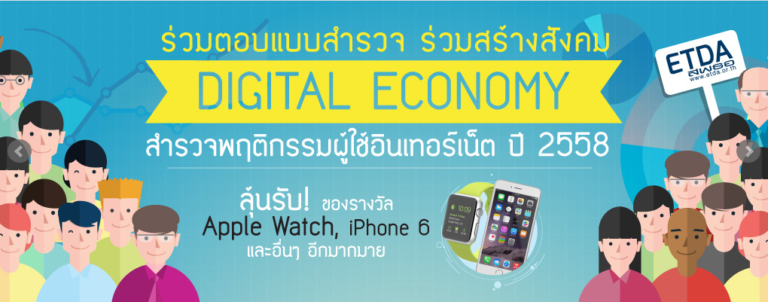 PR NewsETDA ชวนทำแบบสำรวจพฤติกรรมผู้ใช้อินเทอร์เน็ต ปี 2558 ลุ้นรับ Apple Watch และอื่นๆ thumbsupteam May 12, 2015May 12, 2015