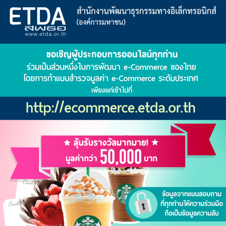 PR NewsETDA ชวนผู้ประกอบการออนไลน์ตอบแบบสอบถาม ลุ้นรับของรางวัลมากมาย thumbsupteam September 24, 2015September 24, 2015