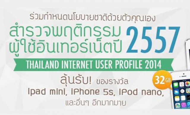 PR Newsสพธอ.ชวนผู้ใช้งานอินเทอร์เน็ตทุกท่านตอบแบบสอบถามเพื่อการวางนโยบายปี 2558 พร้อมชิง iPhone 5s thumbsupteam May 2, 2014May 2, 2014