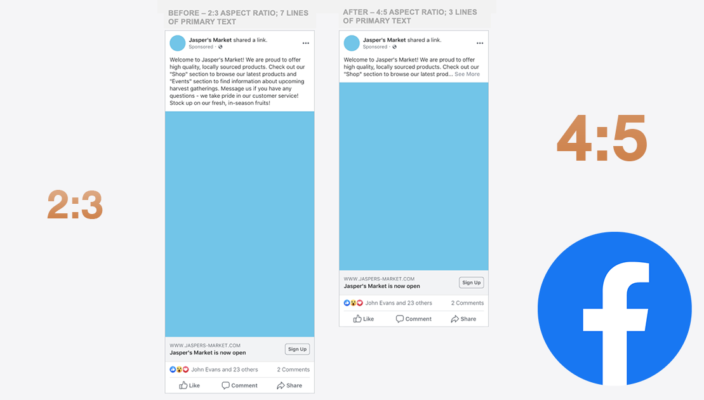 News Facebook ปรับขนาดโฆษณา News Feed บน Mobile จาก 2:3 เป็น 4:5Facebook ปรับขนาดโฆษณา News Feed บน Mobile จาก 2:3 เป็น 4:5 Jenpasit July 23, 2019July 23, 2019