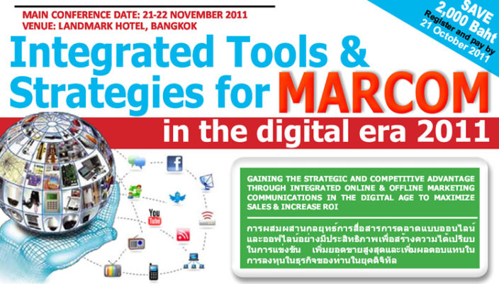 Events & Conferences ข่าวประชาสัมพันธ์: ชาว MARCOM ไม่ควรพลาด – งานสัมนา Integrated Tools & Strategies for MARCOM in the digital era 2011ข่าวประชาสัมพันธ์: ชาว MARCOM ไม่ควรพลาด – งานสัมนา Integrated Tools & Strategies for MARCOM in the digital era 2011 thumbsupteam November 20, 2011May 24, 2019