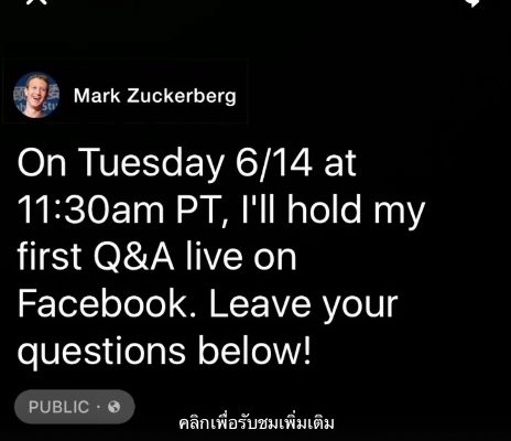 Social Media Facebook ภูมิใจเสนอช่วง Q&A ครั้งแรกของ Mark Zuckerberg ผ่านบริการ LiveFacebook ภูมิใจเสนอช่วง Q&A ครั้งแรกของ Mark Zuckerberg ผ่านบริการ Live thumbsupteam June 9, 2016June 15, 2016