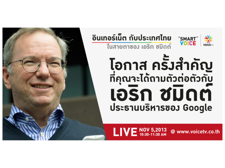 BusinessPR: Eric Schmidt มาเมืองไทย 5 พ.ย. นี้ เปิดโอกาสให้คนทั่วไปถามตอบตัวต่อตัวได้ผ่าน Hangouts thumbsupteam October 30, 2013October 30, 2013