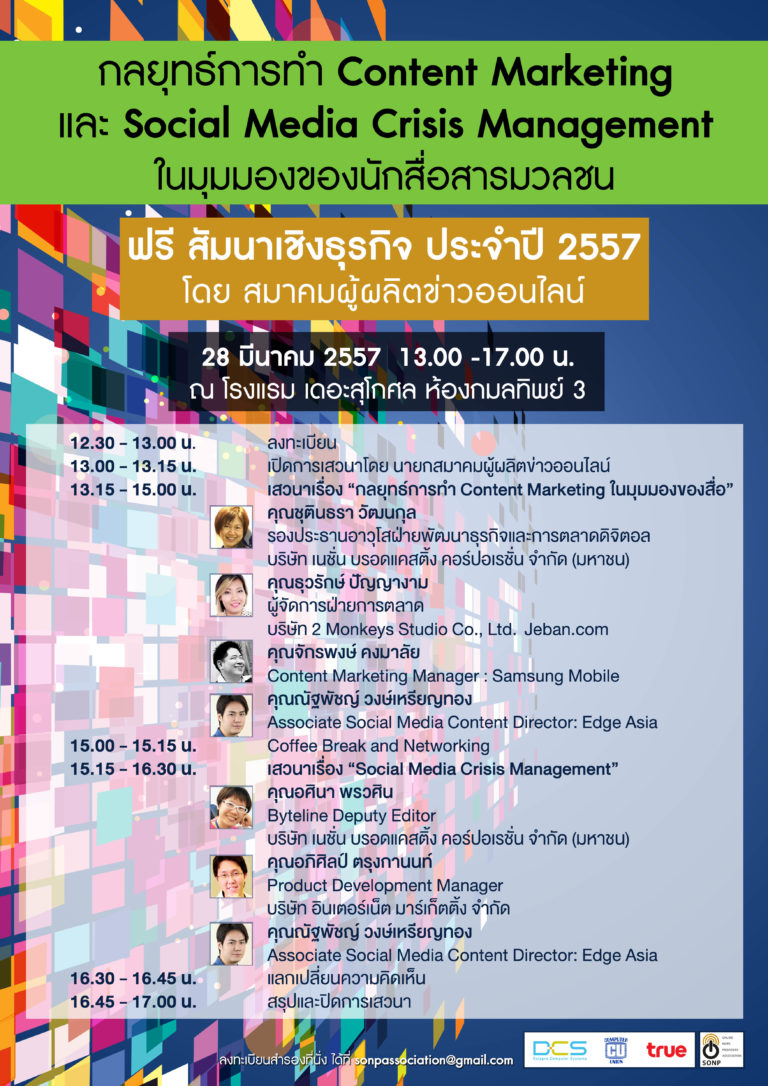 PR Newsกลยุทธ์การทำ Content Marketing และSocial Media Crisis Management ในมุมมองของนักสื่อสารมวลชน thumbsupteam March 24, 2014