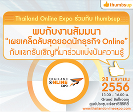PR Newsประกาศผล 5 ทีมสุดท้ายเข้าชิง “สุดยอดนักธุรกิจออนไลน์หน้าใหม่” งาน Thailand Online Expo ประจำปี 2556 thumbsupteam February 1, 2013February 1, 2013