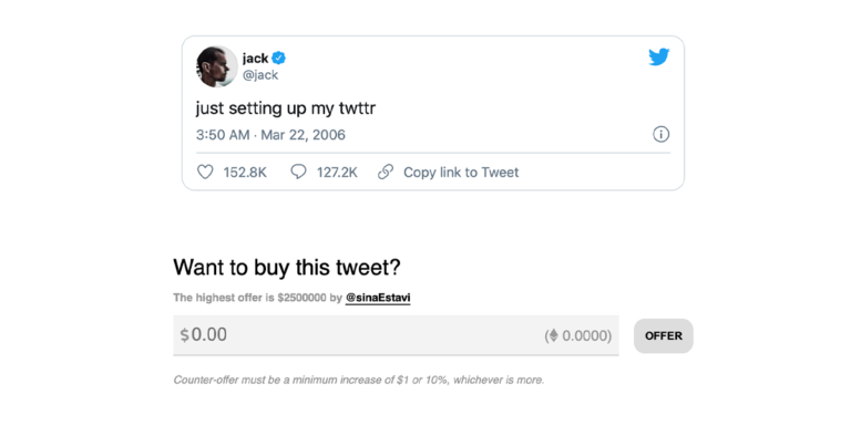 Technologyผู้ก่อตั้งทวิตเตอร์เปิดประมูลทวีตแรกของโลก ราคาล่าสุดอยู่ที่ 2.5 ล้านดอลลาร์สหรัฐฯ sarun.roj March 10, 2021March 10, 2021