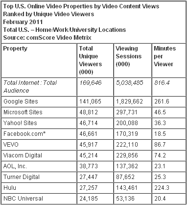ข่าวเทศGoogle เป็นแหล่งการดูวิดีโอออนไลน์อันดับ 1 ใน US ส่วน Facebook มาที่ 4 chyutopia March 19, 2011March 19, 2011