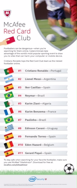 Businessจับกระแสบอลโลก: รวมอันดับรายชื่อนักเตะความเสี่ยงสูงใน “Red Card Club” จาก McAfee เพื่อป้องกันไวรัสเข้าเครื่องคุณ thumbsupteam June 11, 2014June 11, 2014