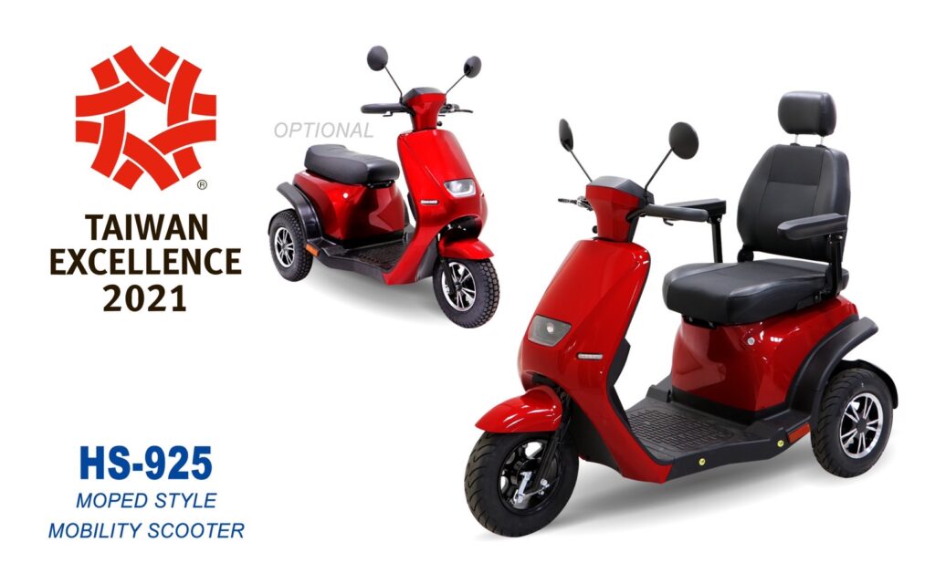 สกู๊ตเตอร์ไฟฟ้า รุ่น HS-925 สกู๊ตเตอร์สามล้อ ดีไซน์ทันสมัยคล้ายรถจักรยานยนต์ สามารถขับขี่ได้ความเร็วสูงสุด 15 กิโลเมตร/ชม. มีแผงควบคุมดิจิตอลและระบบไฟ LED สวยงามและใช้งานง่าย ขับขี่ได้ไกลถึง 35 กิโลเมตรต่อการชาร์จไฟ 1 ครั้ง มีโช้คอัพทั้งด้านหน้าและด้านหลัง จึงให้การขับขี่นุ่มนวล