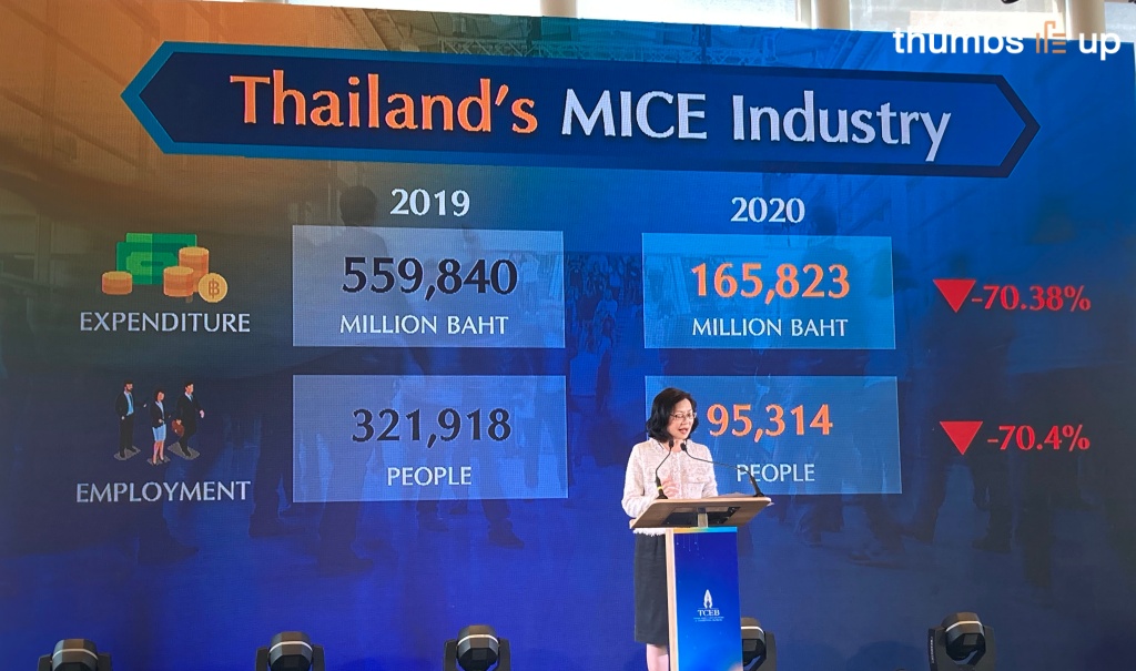 (การระบาดของโควิด 19 ส่งผลกระทบต่อการจัดกิจกรรมไมซ์ในประเทศไทย ทำให้ภาพรวมจำนวนผู้เข้าร่วมกิจกรรมไมซ์ทุกประเภทในปีงบประมาณ 2563 ลดลงกว่าร้อยละ 60 จากช่วงเวลาเดียวกันของปีที่ผ่านมา)
