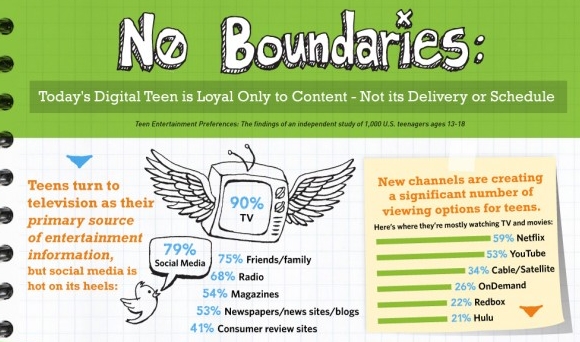 ถึงจะเป็นยุคโซเชียล แต่การสำรวจพฤติกรรมวัยรุ่นส่วนใหญ่ในสหรัฐฯยังคงพบว่าทีวีคือแหล่งรับข้อมูลความบันเทิงหลัก รองลงมาจึงจะเป็นโซเชียลมีเดีย และอีกหลายสื่อที่นักการตลาดควรรู้ว่าวัยรุ่นวันนี้ยังเสพสื่ออะไรบ้างในยุคดิจิตอล