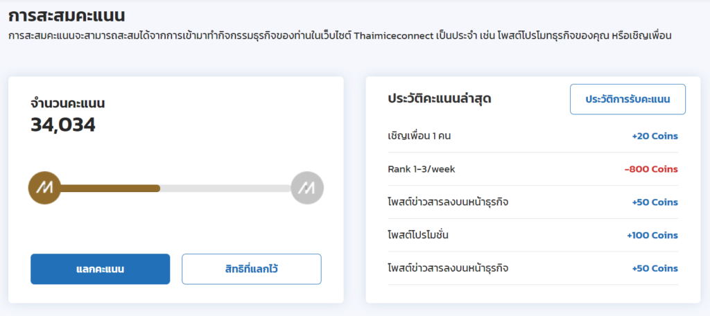 ระบบการทำแต้มสะสม เพื่อแลกรับสิทธิพิเศษมากมาย อาทิ การโปรโมทฟรีผ่านช่องทางต่างๆ หรือเลื่อนให้เป็นอันดับแรกๆ ของการค้นหา เพิ่มโอกาสให้การเจอลูกค้ามากกว่าใคร