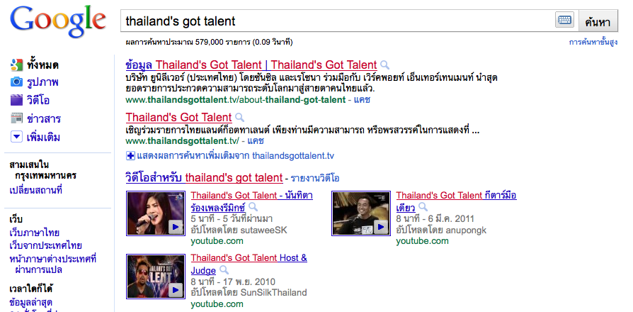 นอกจากนี้้ Google ยังให้ค่ากับการเลือกเนื้อหาที่น่าสนใจที่สุดตอนนี้ด้วย เมื่อเราใส่ชื่อรายการ “Thailand’s got Talent” เข้าไป นี่คือหลักฐาน